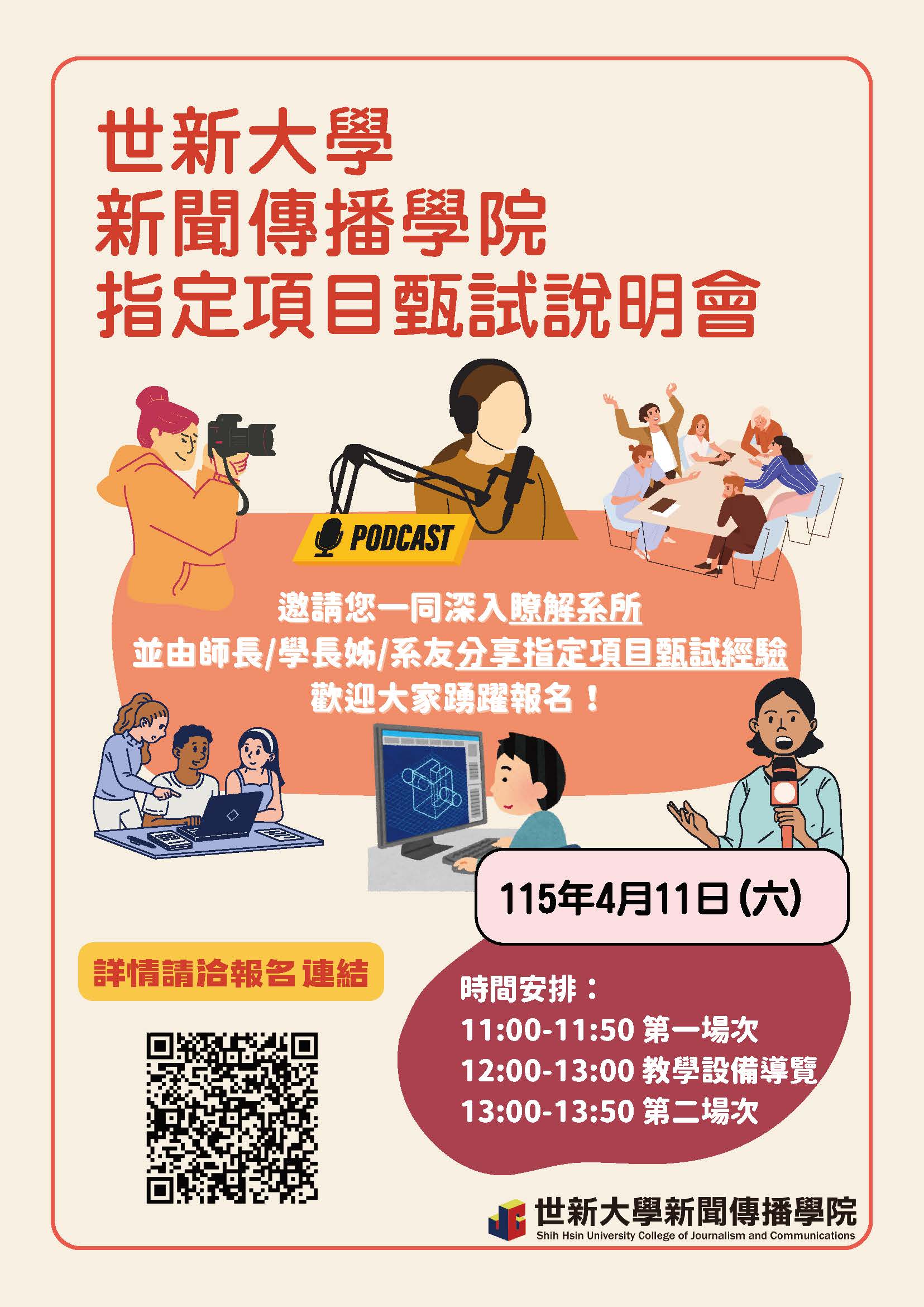 《歡迎參加》115年口語傳播暨社群媒體學系4/11指定項目甄試說明會 世新大學的新聞傳播學院共有8個不同的科系 […]