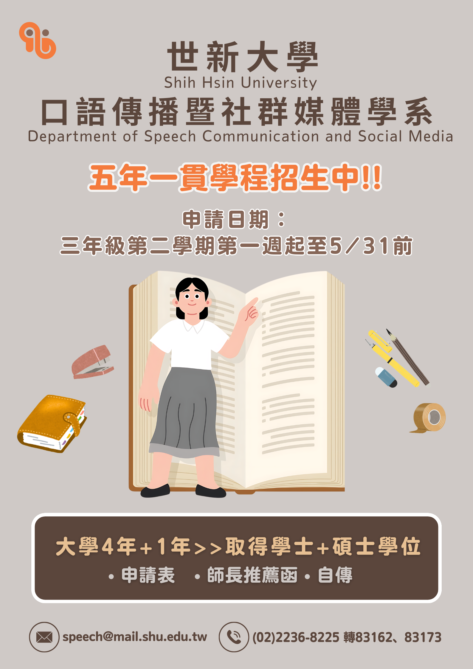 大學部三年級學生修業滿五學期,得於三年級下學期五月底前向本系提出申請